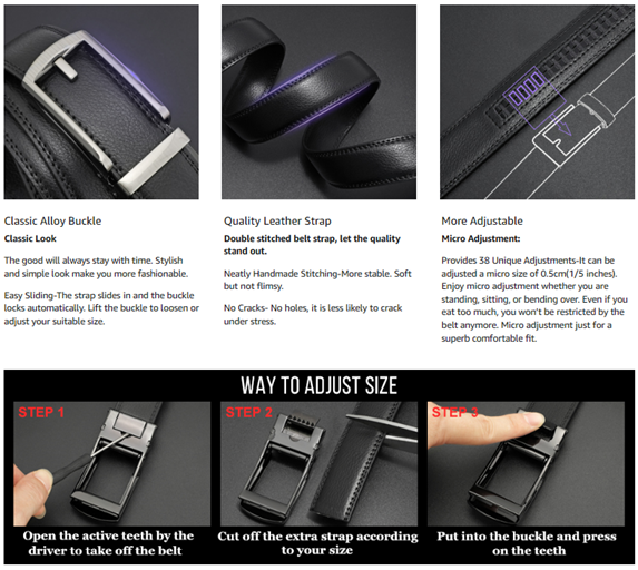 • Good Raw Material to get Great Product - The Strap of this Belt is made of high-grade leather with texture, quite durable and sturdy beyond your imagination. The innovative new style buckle is made of Zinc Alloy, shiny and practical. The buckle will not fall off or get slipping after long time use. Only good raw materials can create a great product, you will like this belt for its quality.