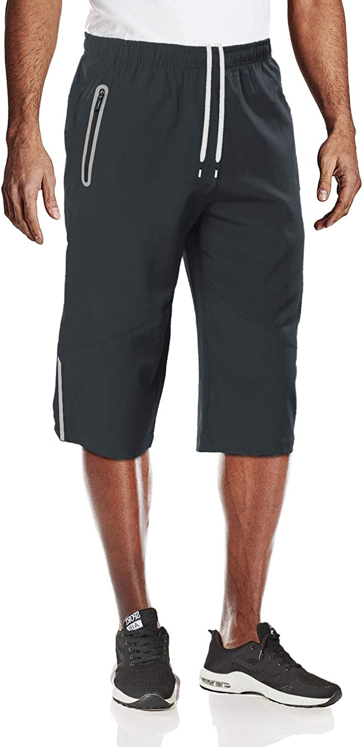 MAGCOMSEN Men's Quick Dry 3/4 Capri Pants Zipper Pockets Hiking Running Long Shorts