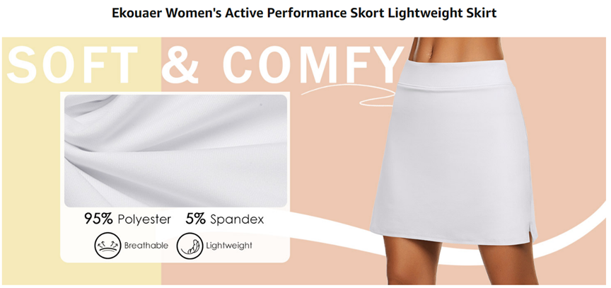Ekouaer Women's Active Performance Skort Lightweight Skirt for Running Tennis Golf Workout Sports