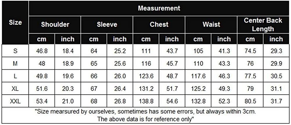 • WARM TIPS - Please check product description before ordering to ensure accurate fitting, can use similar clothing to compare with the size. Wash it before wearing.Can Machine Washable. Hand wash or Dry clean recommended.