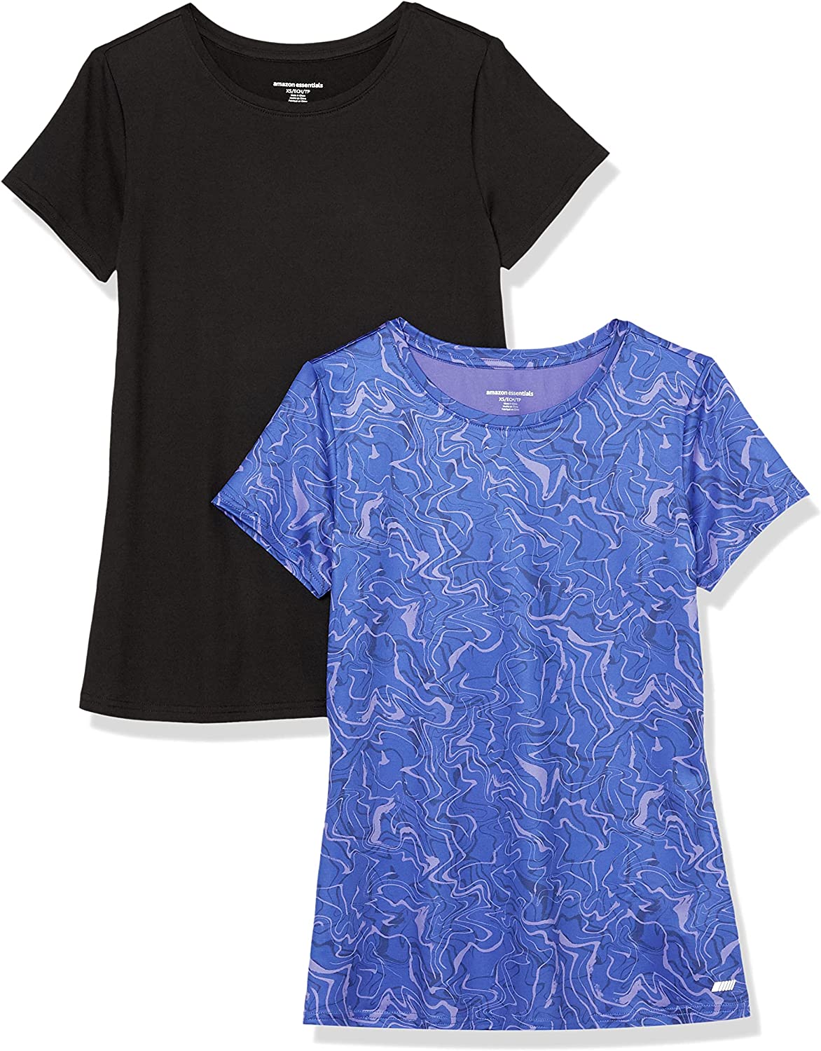 Amazon Essentials Women's Tech Stretch Short-Sleeve Crewneck T-Shirt (Available in Plus Size), Multipacks
