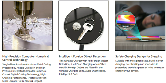 - 【LED Indicator Lights】 Changing color breath LED lights. Beautiful and lets you know when it's ready to charge, charging, and when your device is fully charged.