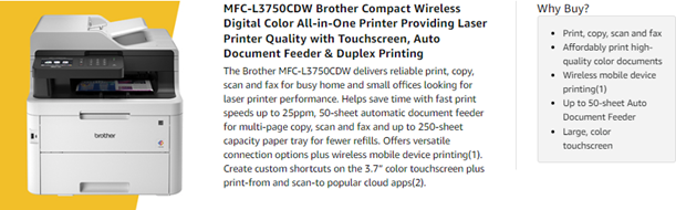 • Your purchase includes One Brother MFC-L3750CDW Digital Color All-in-One Printer
