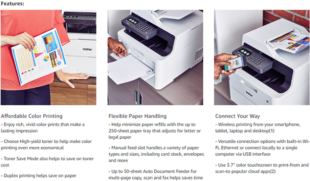 Brother MFC-L3750CDW Digital Color All-in-One Printer, Laser Printer Quality, Wireless /Duplex Printing, Amazon Dash Replenishment Ready