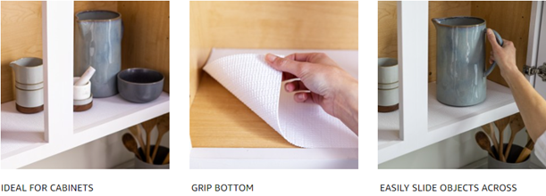 • Non-adhesive grip bottom keeps liner in place while it's easy to slide objects across smooth surface