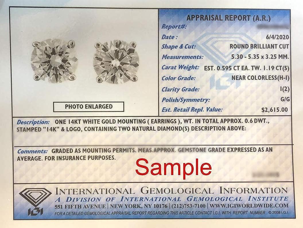1 to 2 Carat Natural Diamond Stud Earrings IGI Certified Total Weight Round in 14K White Gold with Screw Backs by Beverly Hills Jewelers