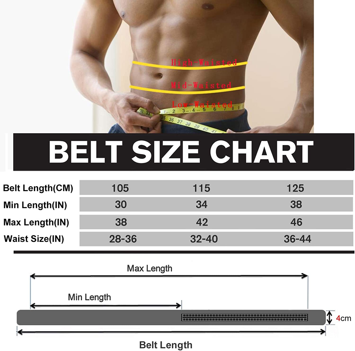 - Size of men's leather belt: Waist Size: 31"-37", Belt Width: 35mm, Buckle Size:1.6"*3.3"/4cm*8.5cm.