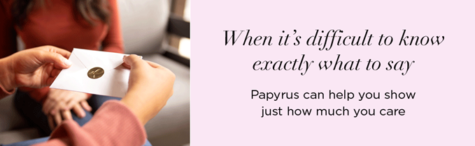 • Share warm thoughts with someone facing a loss. Sympathy greeting cards by Papyrus offer premium style and a heartfelt message to let them know how much you care.
