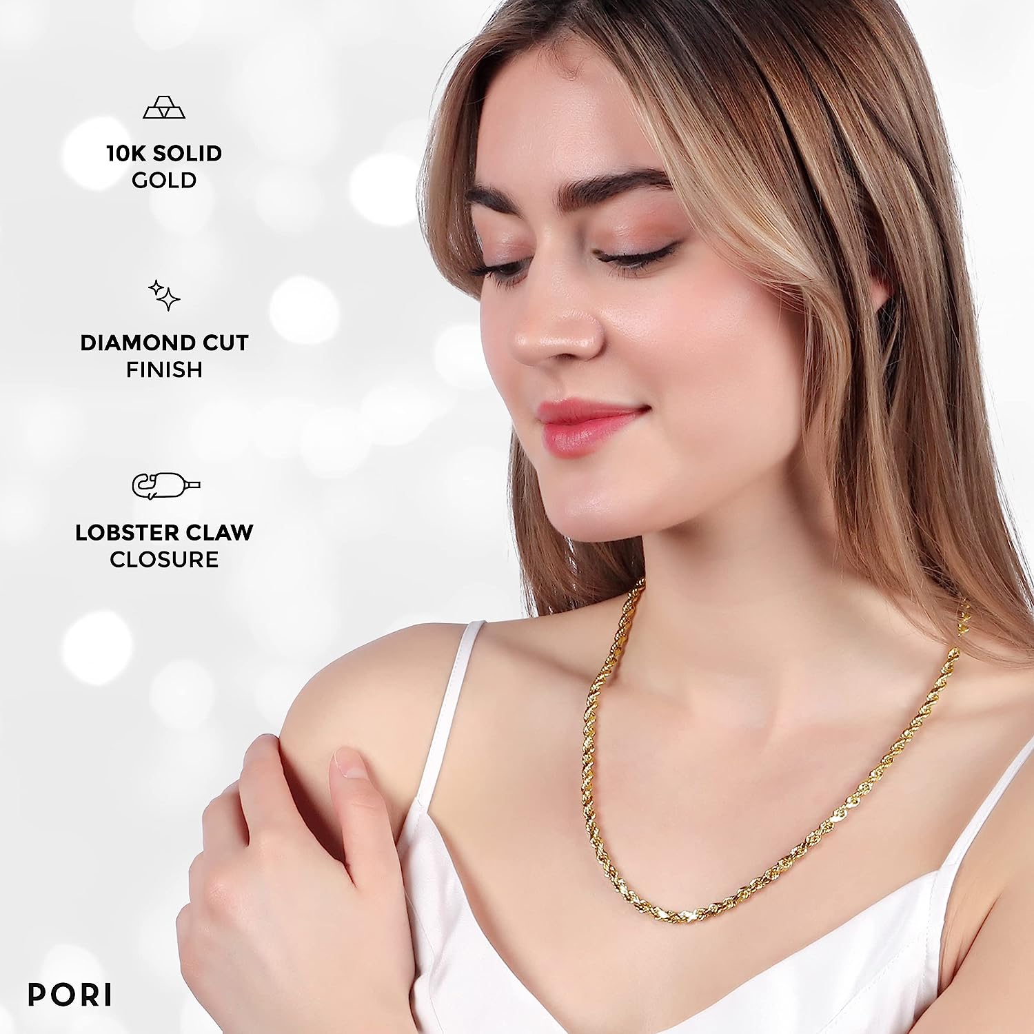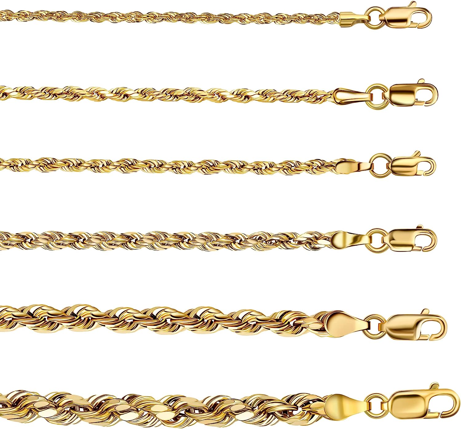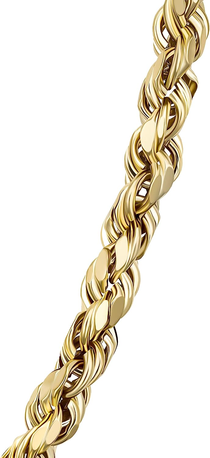 • SAFE-TO-WEAR 100% HYPOALLERGENIC: Our jewelry is made of lead and nickel-free materials, these durable, high-quality 10k gold rope chains are safe even for sensitive skin, and won't cause rashes or breakouts.