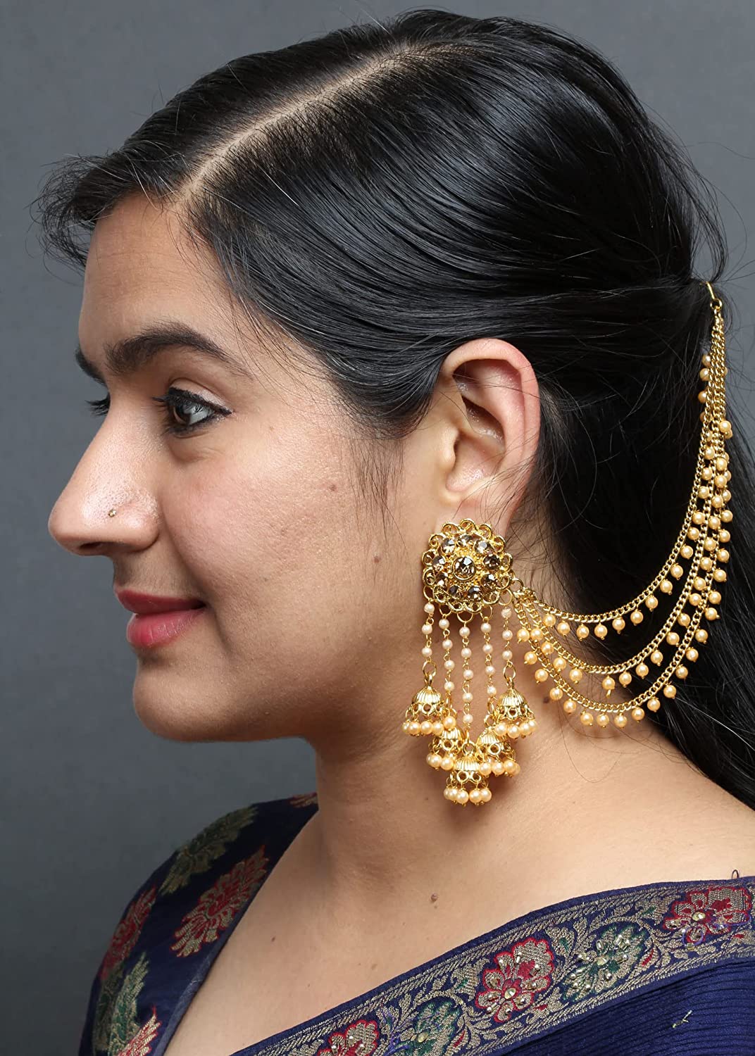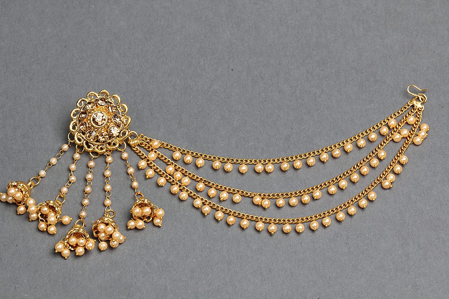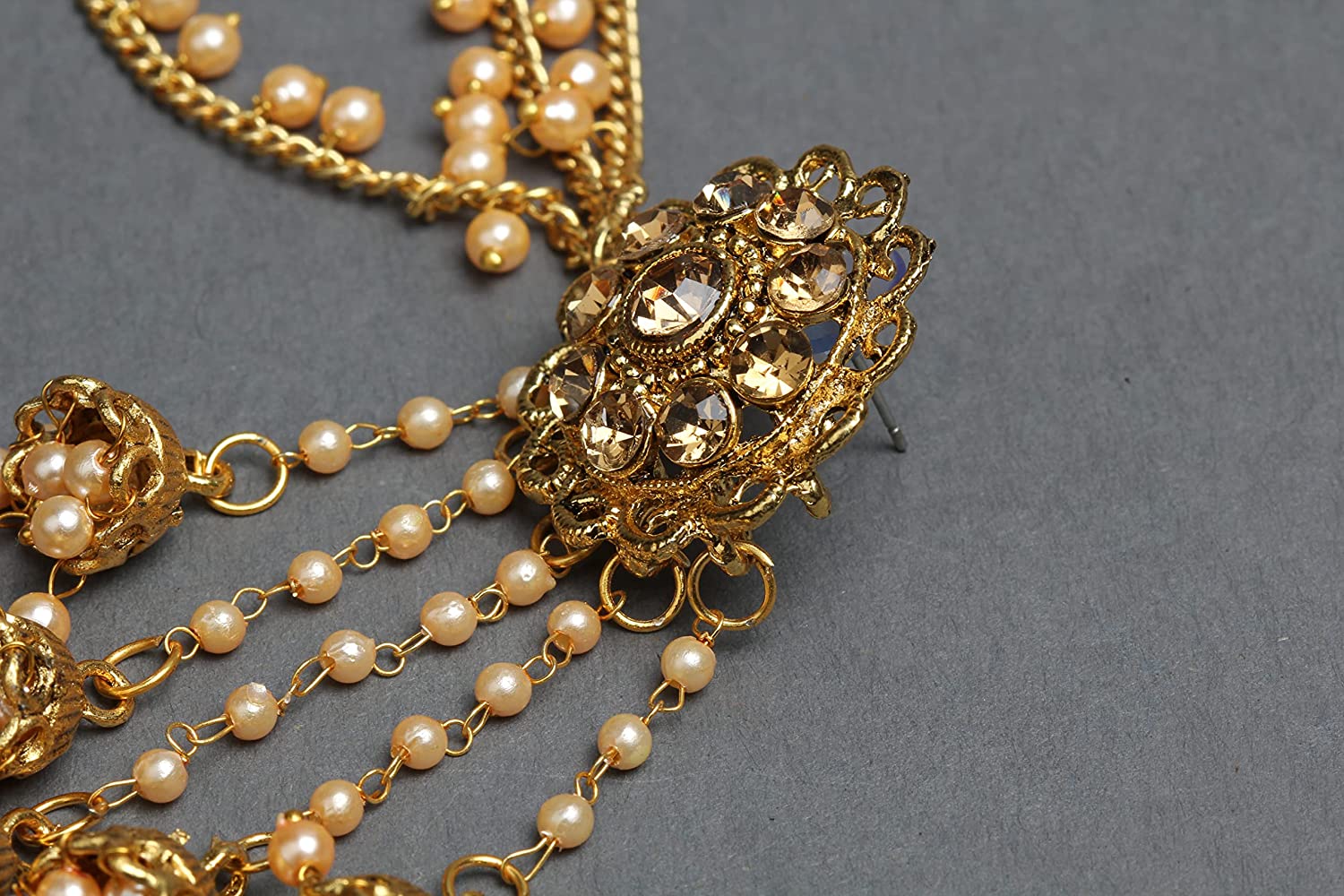 Bindhani Fashion Bollywood Jewellery Traditional Ethnic Bridal Bride Wedding Bridesmaid Gold Plated Kundan Pearl Drop Jhumka Jhumki Head chain Indian Bahubali Earrings Jewelry For Women