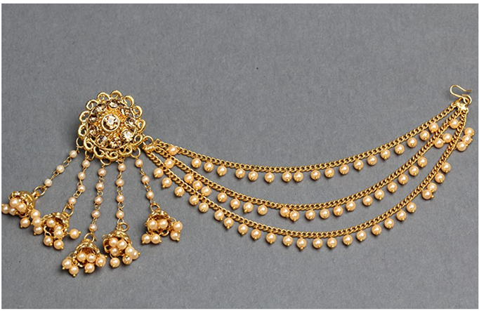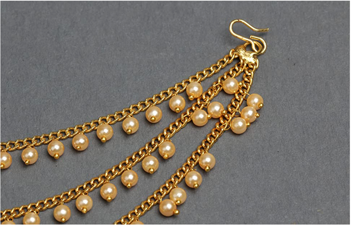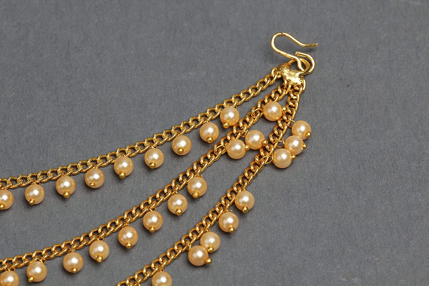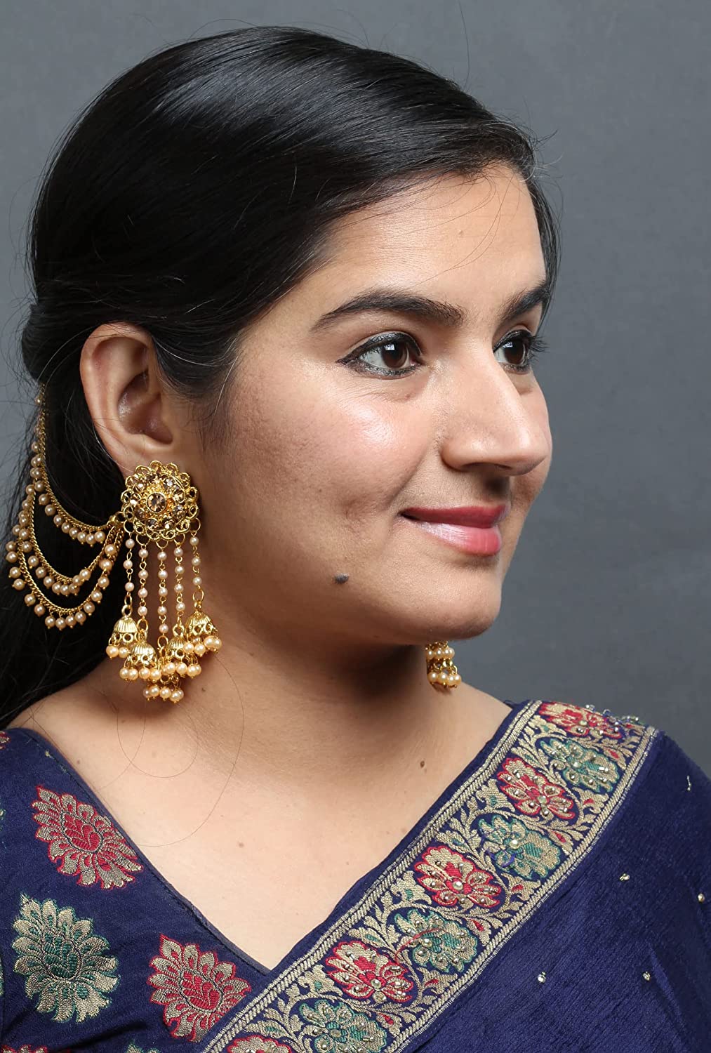 Bindhani Fashion Bollywood Jewellery Traditional Ethnic Bridal Bride Wedding Bridesmaid Gold Plated Kundan Pearl Drop Jhumka Jhumki Head chain Indian Bahubali Earrings Jewelry For Women