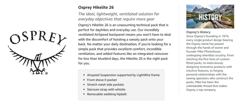 • VENTILATION : Hoisting a sweaty pack onto your back is one of the least enjoyable experiences imaginable. The suspended-mesh Airspeed Hikelite backpanel means hikers never have to worry about those soggy moments again.