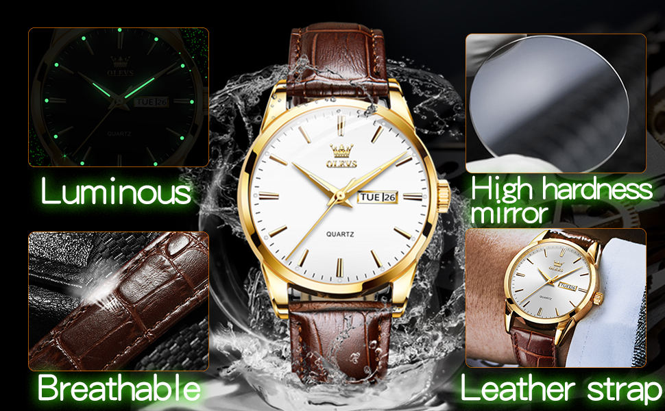 • ?【Use Tips 】Luminous Mens Watch,Easy Read Men Watch (When Using The Night Light Function for The First Time, illuminate The Watch for 30 Seconds Under the Light to Activate the Light Function).Waterproof Leather Watch(30m),Support Hand Washing, Rain, Sailing And Water Sports Swimming And Bathe In Cold Water, Don't Press Any Buttons Underwater,Not Suitable for Deep Diving