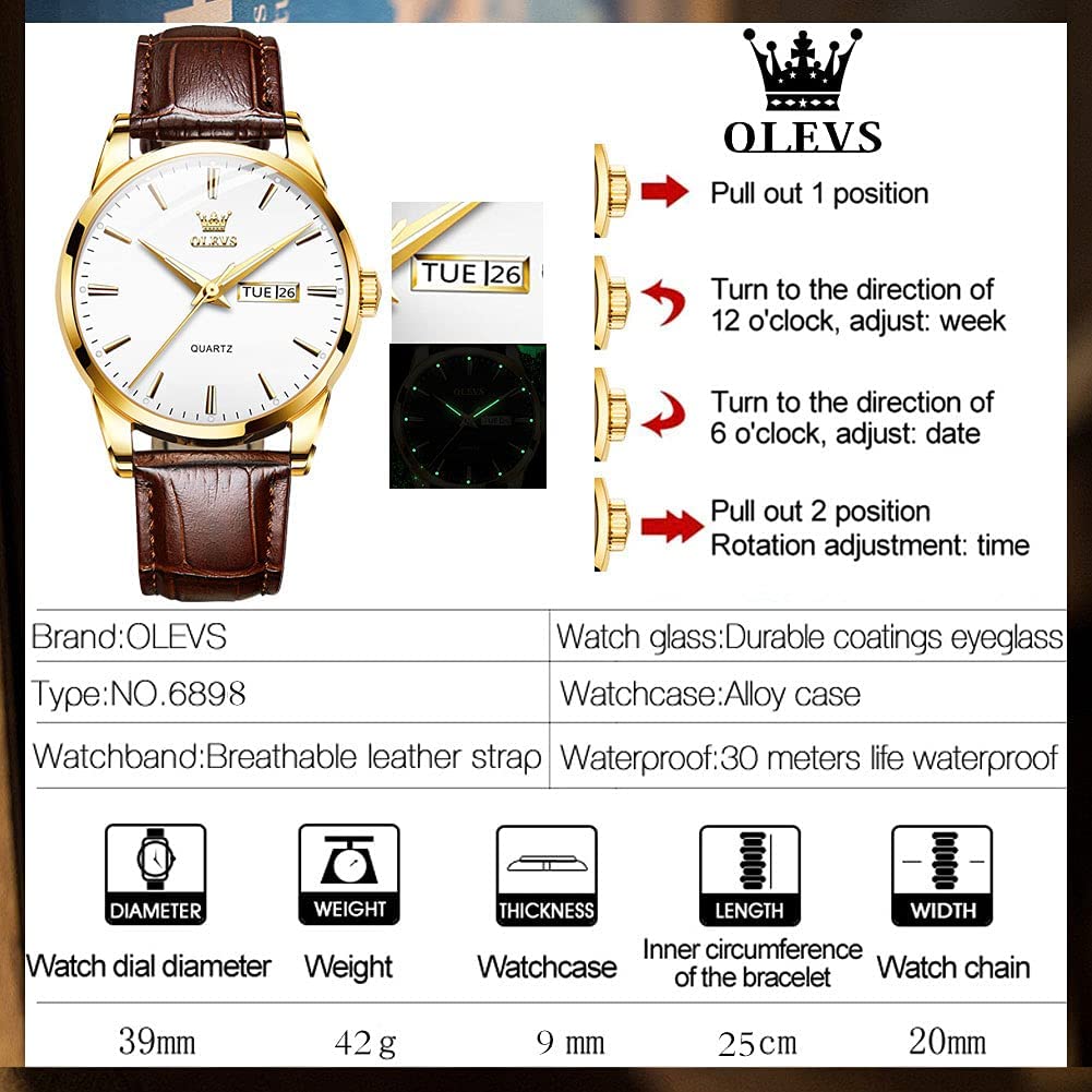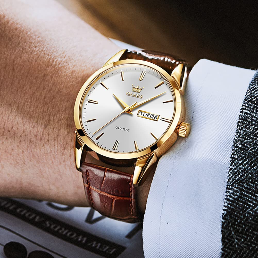 OLEVS Amazon Watches,Brown Leather Watch for Men,Men Day Date Watch,Men's Luminous Watch,Dress Watch for Men,Rose Gold Watch for Men,Men's Fashion Quartz Watch,Waterproof Brown Man Watches
