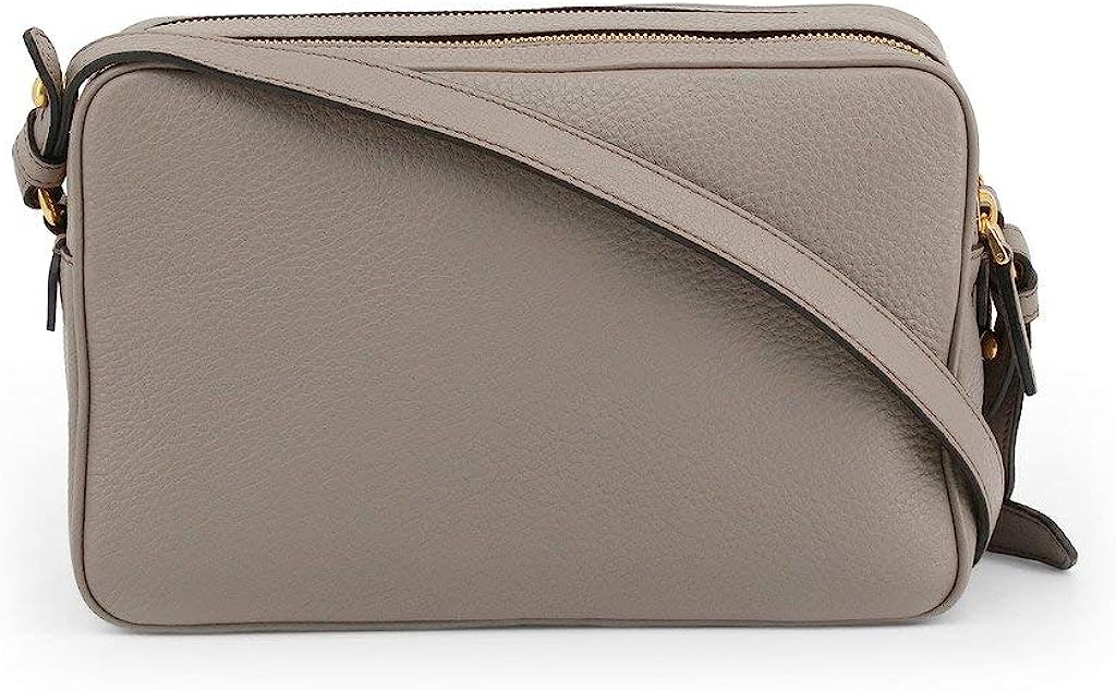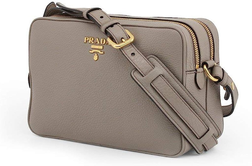 • This crossbody bag is crafted with argilla grey vitello phenix leather. The bag features a gold Prada Milano logo on the front and an adjustable leather strap. The two zipper compartments open to a spacious jacquard lined interior that allows for convenient storage and organization. This Prada handbag is great for everyday use with the distinctive quality and style of Prada!