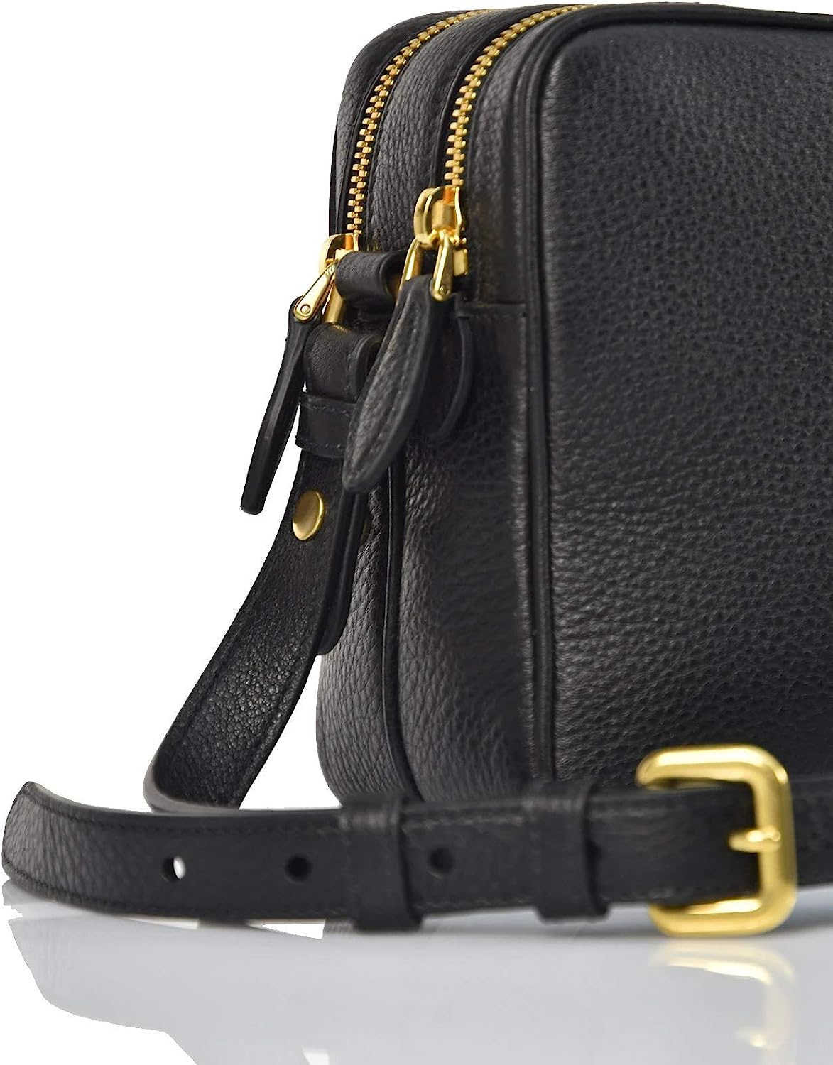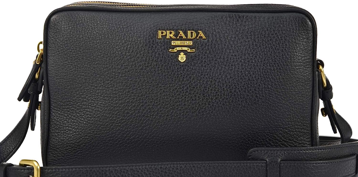 Prada Women's Black Bandoliera Vitello Phenix Leather Crossbody Bag 1BH079