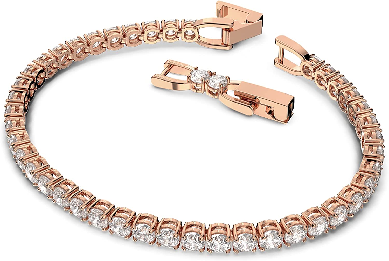 Items delivered: 1 x Swarovski Tennis Deluxe collection bracelet for women, 6 3/8 inch rose-gold tone plated chain, lined with sparkling white crystal stones, with Swarovski bracelet box