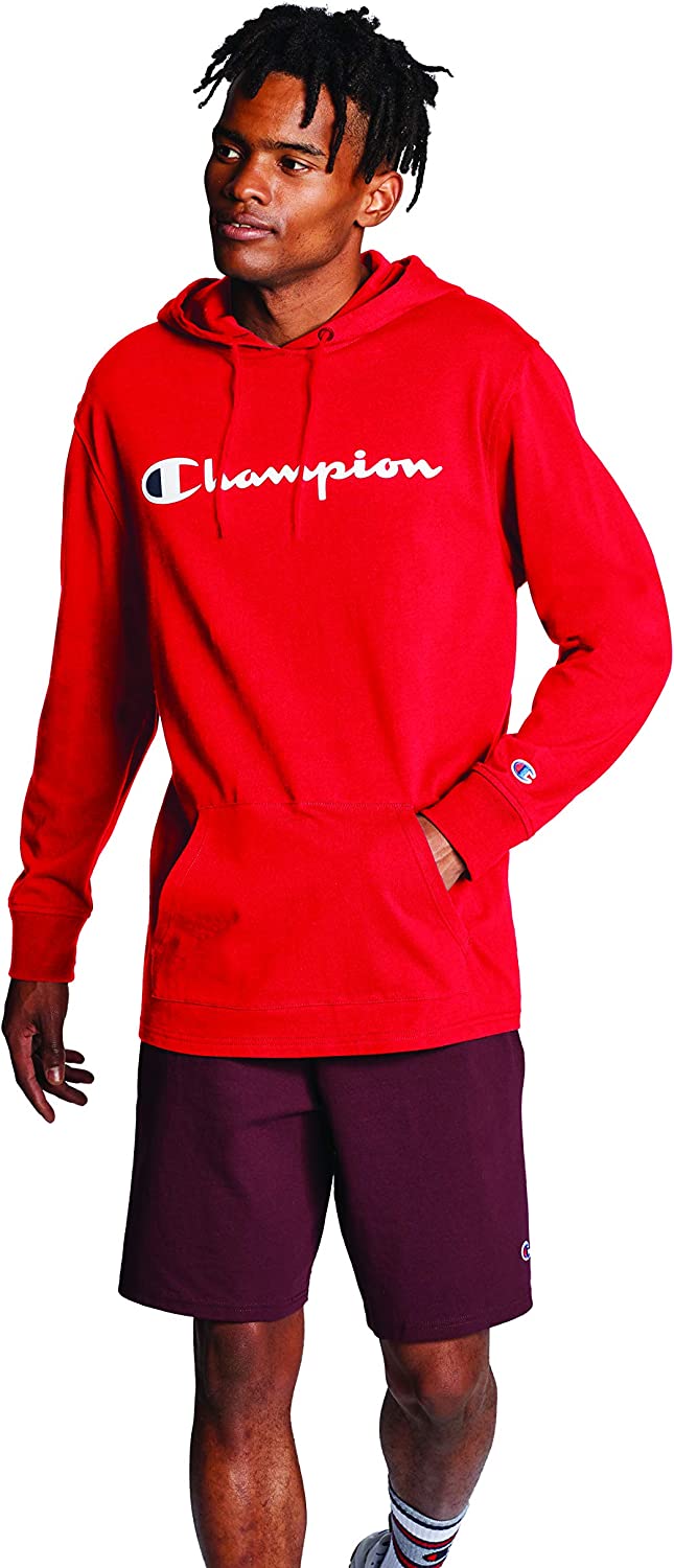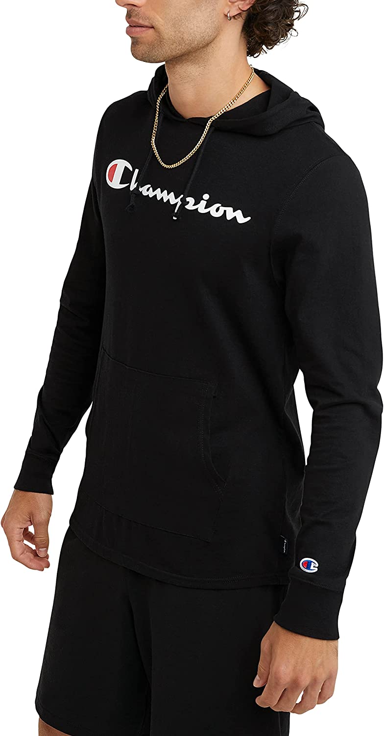 Champion Men's T-shirt Hoodie, Cotton Mid-weight Hooded Men's T-shirt, Comfortable Men's Tee