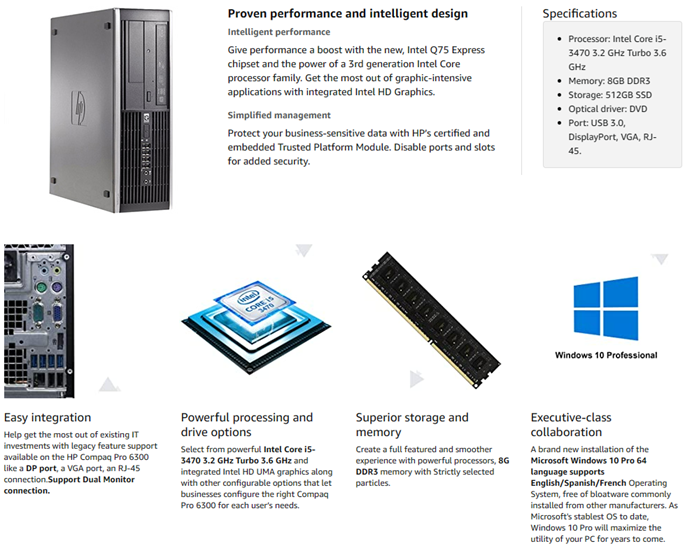 HP Flagship Pro Desktop 2018 Computer, Core I5 Up to 3.6GHz, 8GB, 512GB SSD, WiFi, DVD, DP, VGA, USB 3.0, Windows 10 Pro 64 Bit-Multi Language-English/Spanish/French(CI5) (Renewed)