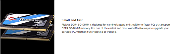 Feel the boost in speed with G.SKILL Ripjaws DDR4 SO-DIMM! Designed for the latest ultra high performance NUC and small form factor PCs, this memory kit is the ideal system upgrade and provides faster data transfer and higher energy efficiency than ever. Experience a new standard of speed with Ripjaws DDR4 SO-DIMM today!