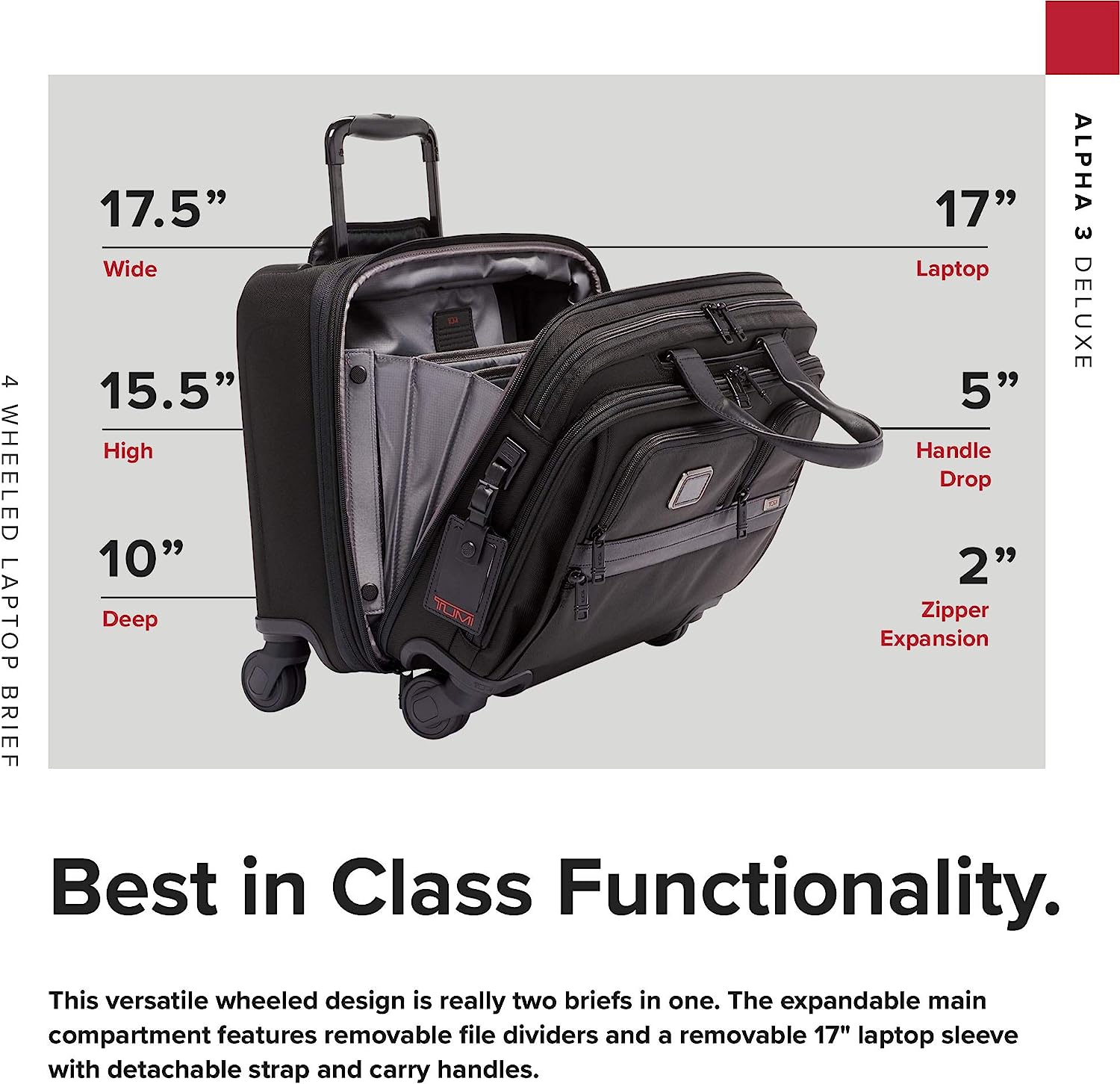 TUMI - Alpha 3 Deluxe 4 Wheeled Laptop Case Brief Briefcase - 17 Inch Computer Bag for Men and Women