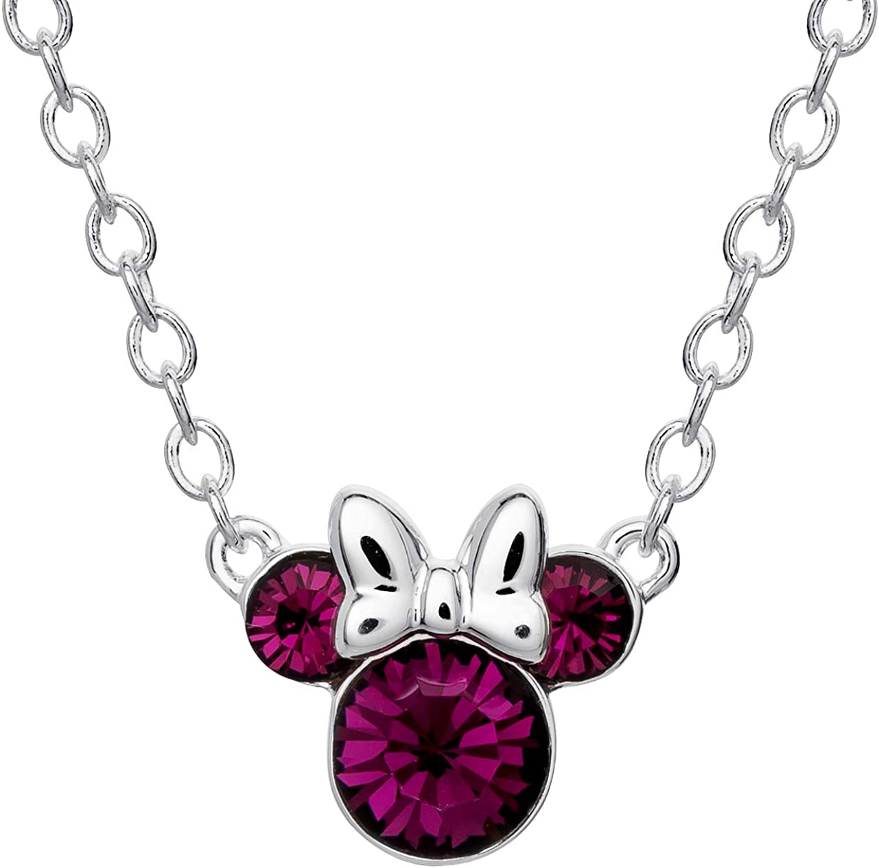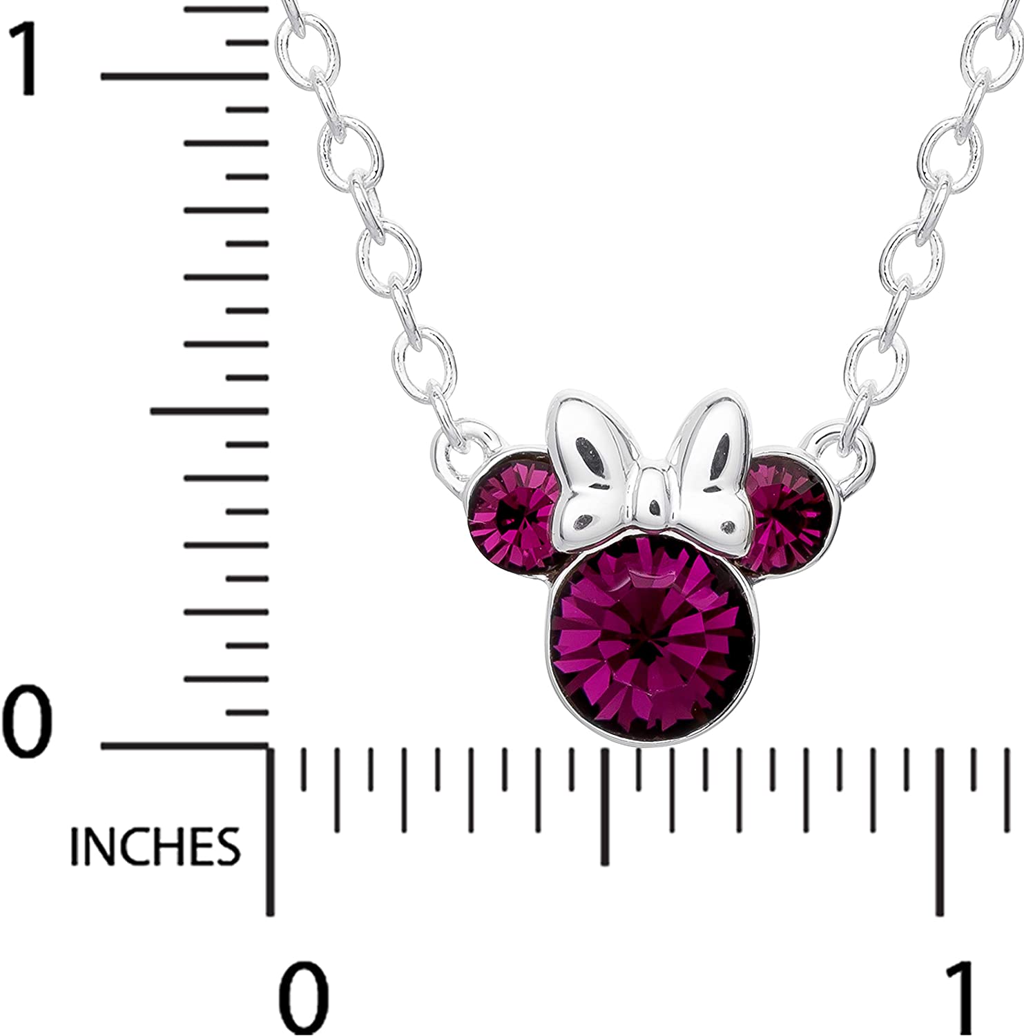 Disney Minnie Mouse Crystal Birthstone Jewelry, Birth Month Pendant Necklace, Silver Plated