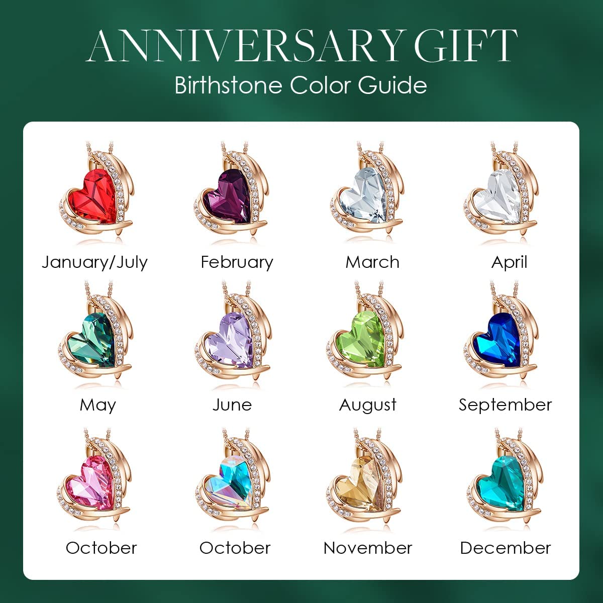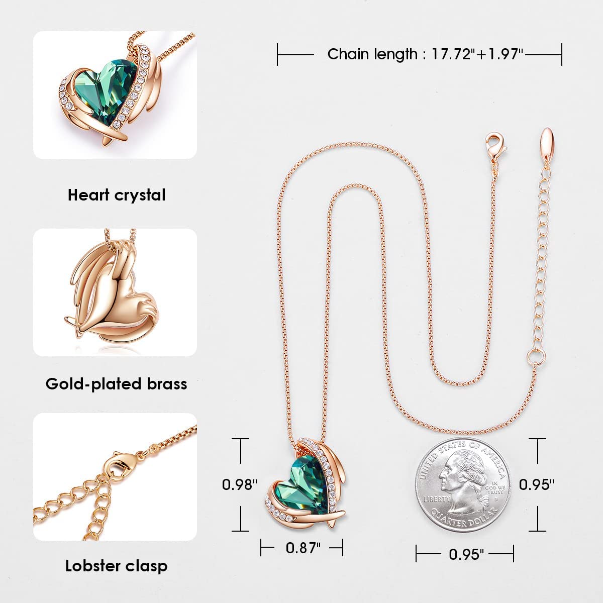 • WOMEN NECKLACE SPECIFICATIONS: Pendant Size: 0.98*0.87 inch |Chain Length: 17"+ 2" |Plating: Rose Gold Plated Silver-tone | Clasp: Lobster Claw. Women's jewelry stone: embellished with Austrian Crystals, Wild Heart Shaped Stone, Green,heart necklaces.
