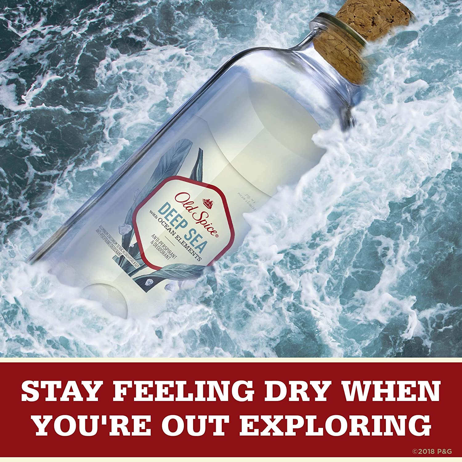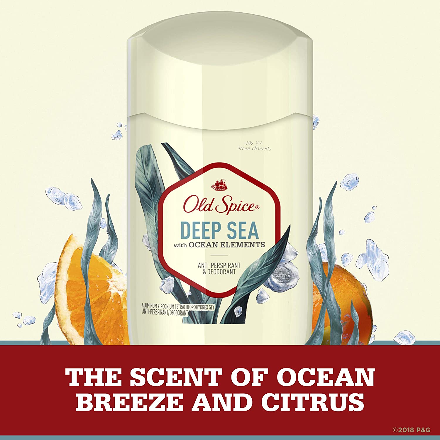 The best smells on earth are the smells that you haven't even smell yet. Whether that's true or not, it's impossible to prove us wrong, so don't even try. That's why we sought the freshness of the deep sea, one of the remotest places on Earth. It really makes you wonder if anyone has smelled the bottom of the sea before. Deep Sea with Ocean Elements smells like the sea: an unforgiving but-some would say-fair mistress, with the seaside smells of citrus and flowers. Old Spice Men's Invisible Solid Antiperspirant and Deodorant reduces armpit sweat, goes on invisible, and stays feeling dry. So bring the scent of your adventures home or smell like adventures you haven't ventured yet. We won't judge. Just do you, guy.