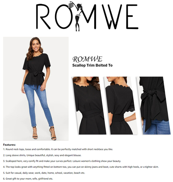 Romwe Women's Bow Self Tie Scalloped Cut Out Short Sleeve Elegant Office Work Tunic Blouse Top