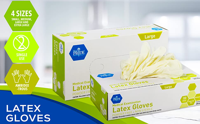 • COMFORTABLE FIT: The Medpride Latex exam gloves feature a natural latex build that allows for heavy duty use without fear of puncture. They are powder-free, ambidextrous and offer a stretchy & comfy fit for both men and women.