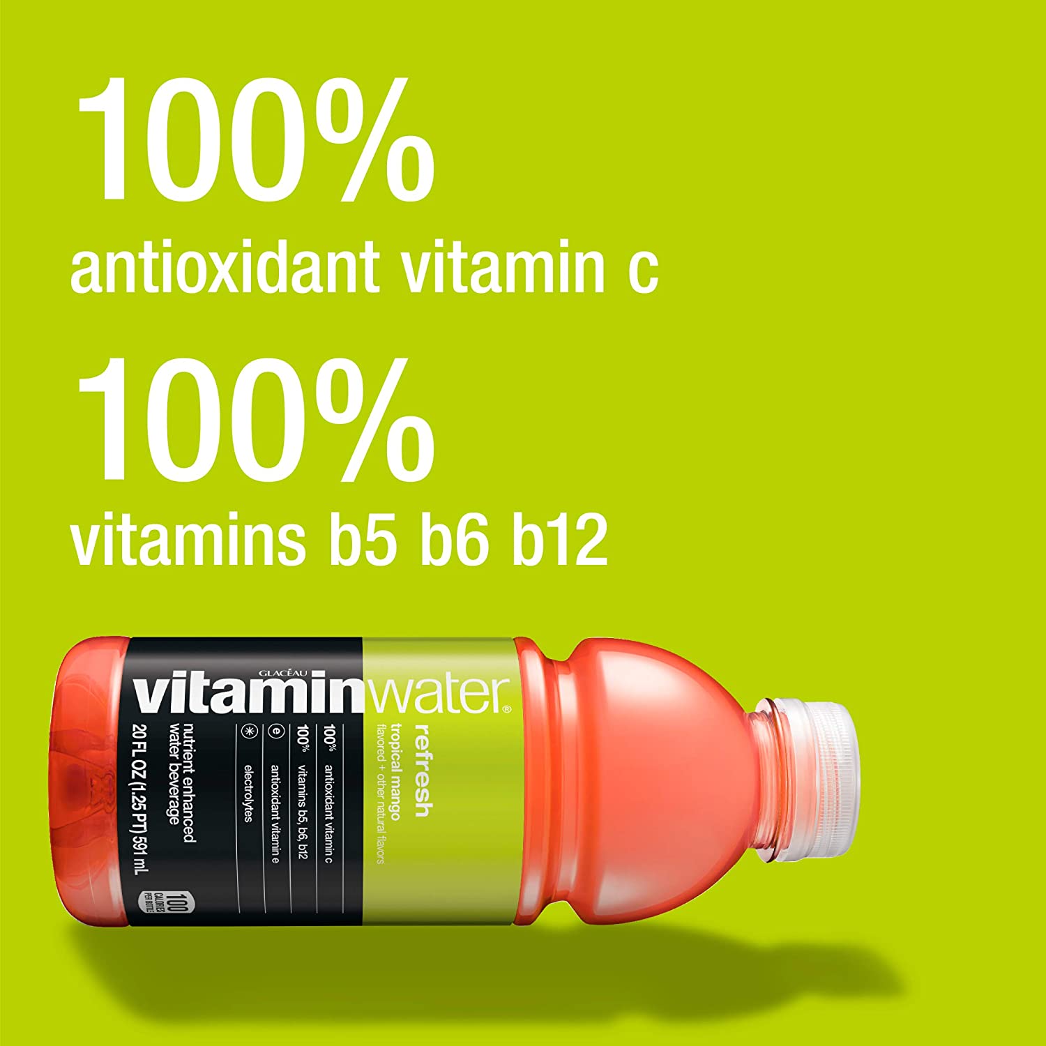 Vitaminwater Refresh, Tropical Mango Flavored, Electrolyte Enhanced Bottled Water with Vitamin b5, b6, b12, 20 Fl Oz (Pack of 12)