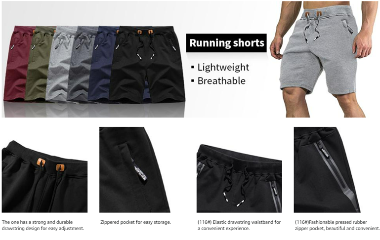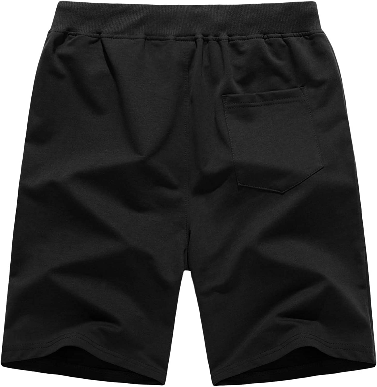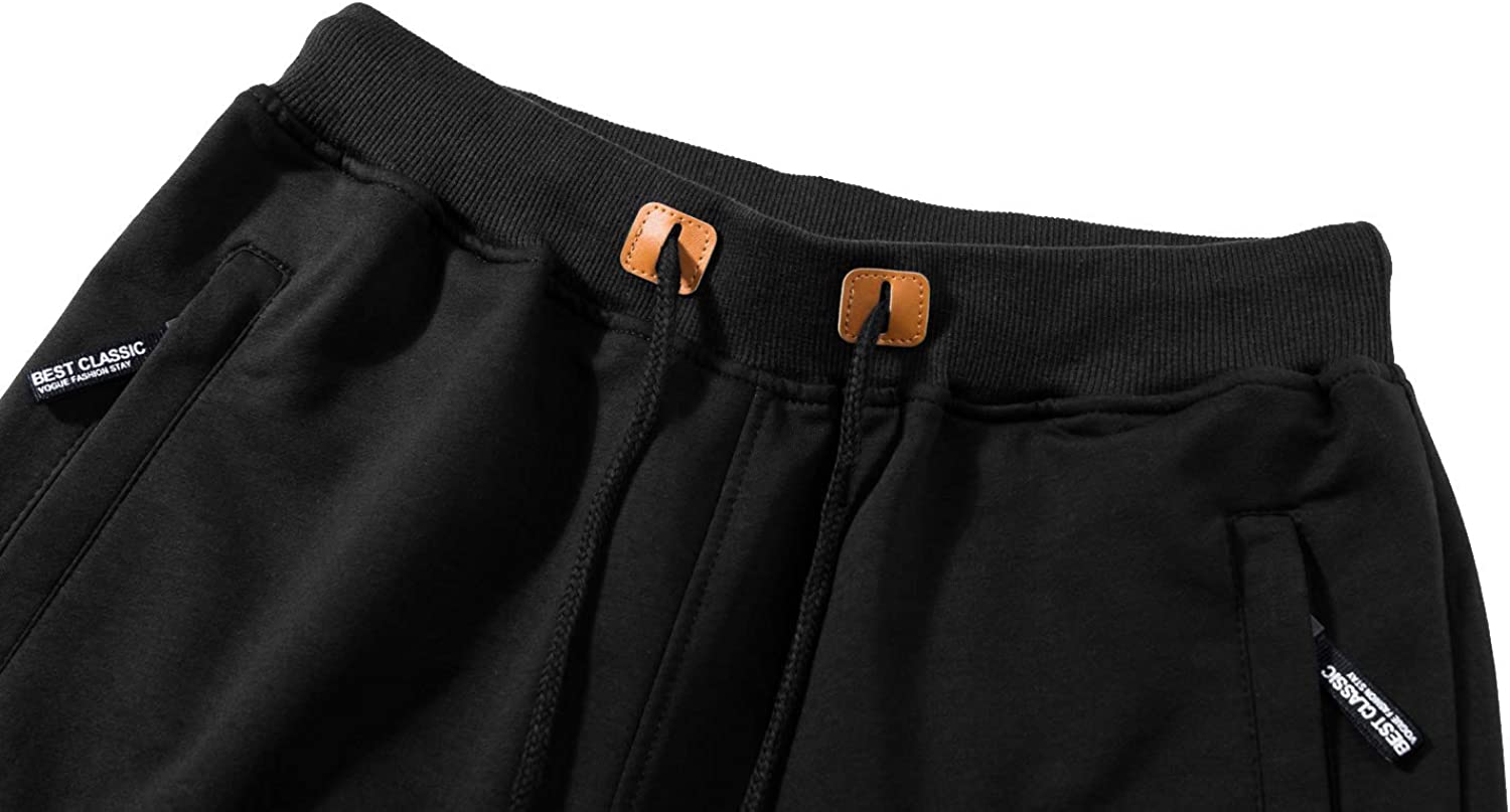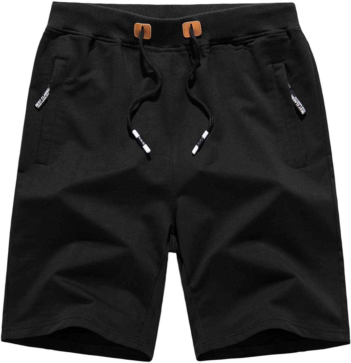 CRYSULLY Men's Cotton Joggers Casual Workout Shorts Running Shorts with Zipper Pockets