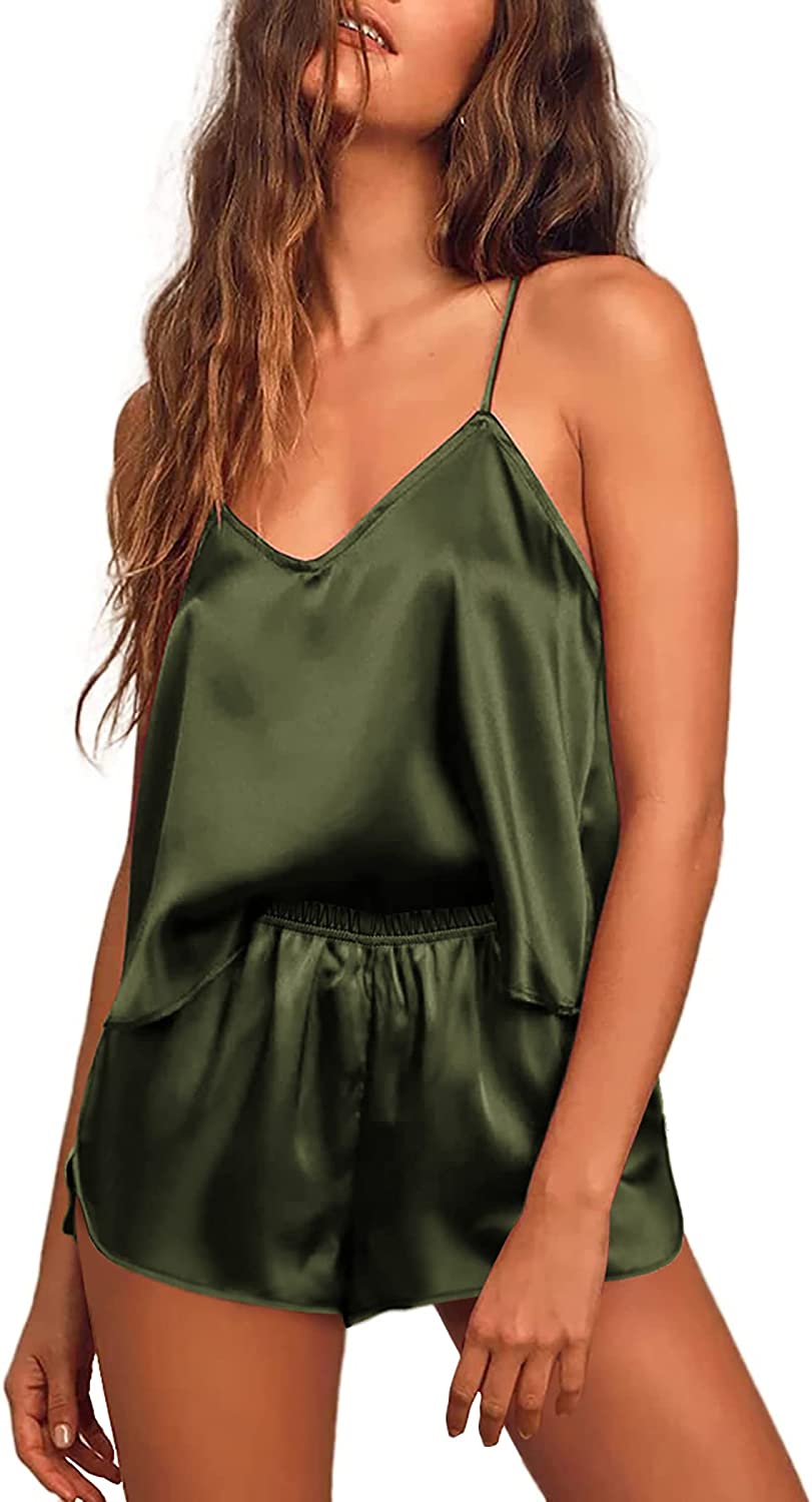 Ekouaer Satin Sleepwear for Women Silk Soft Lingerie Pajamas Cami Shorts Set Grey