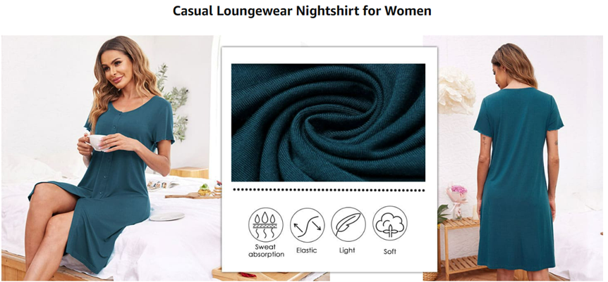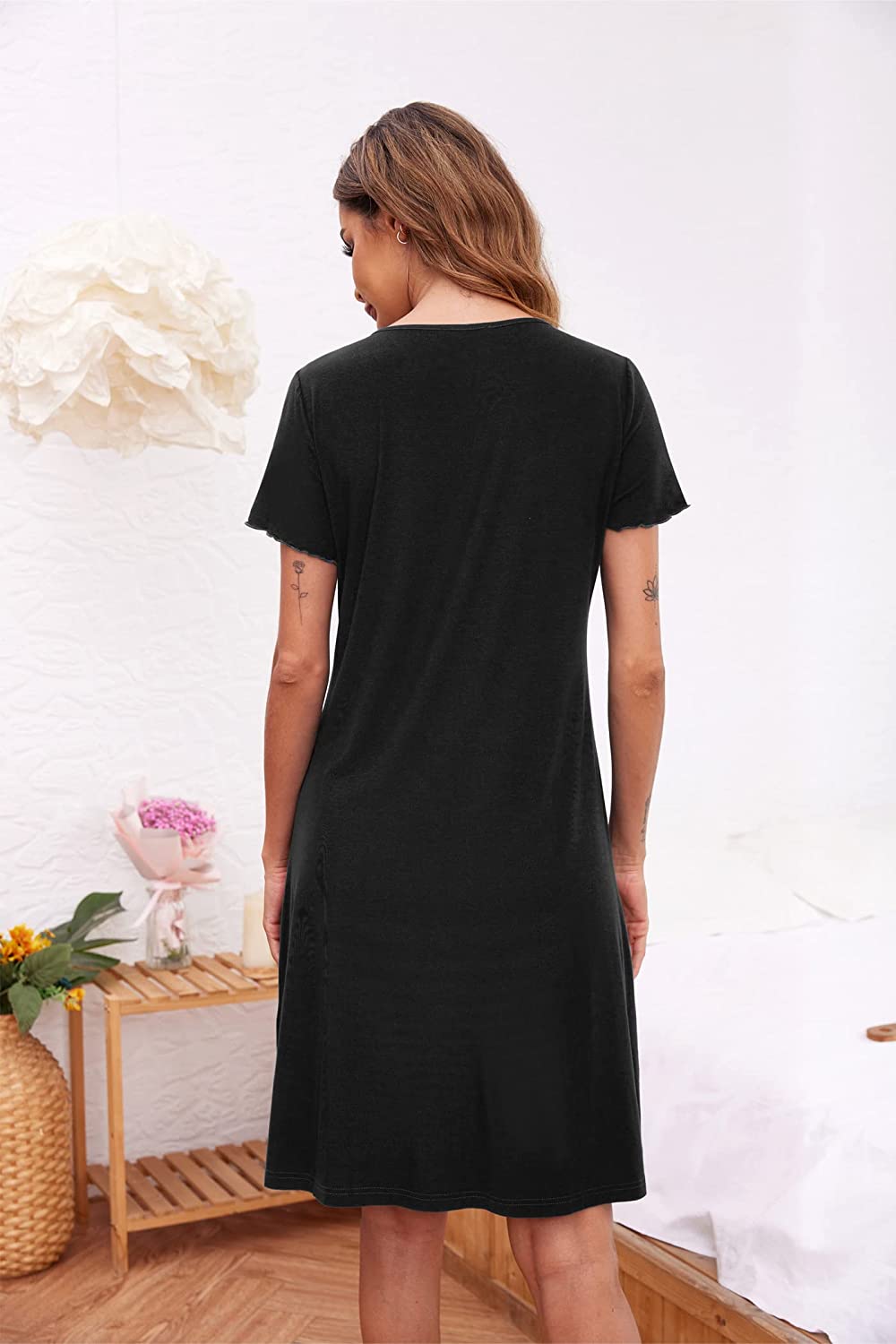 • Ekouaer sleepwear dress is made of stretchy and skin-friendly fabric, breathable and comfortable nightshirt, relaxed fit is never tight or constricting. This womens button nightgown will give you a comfortable night.