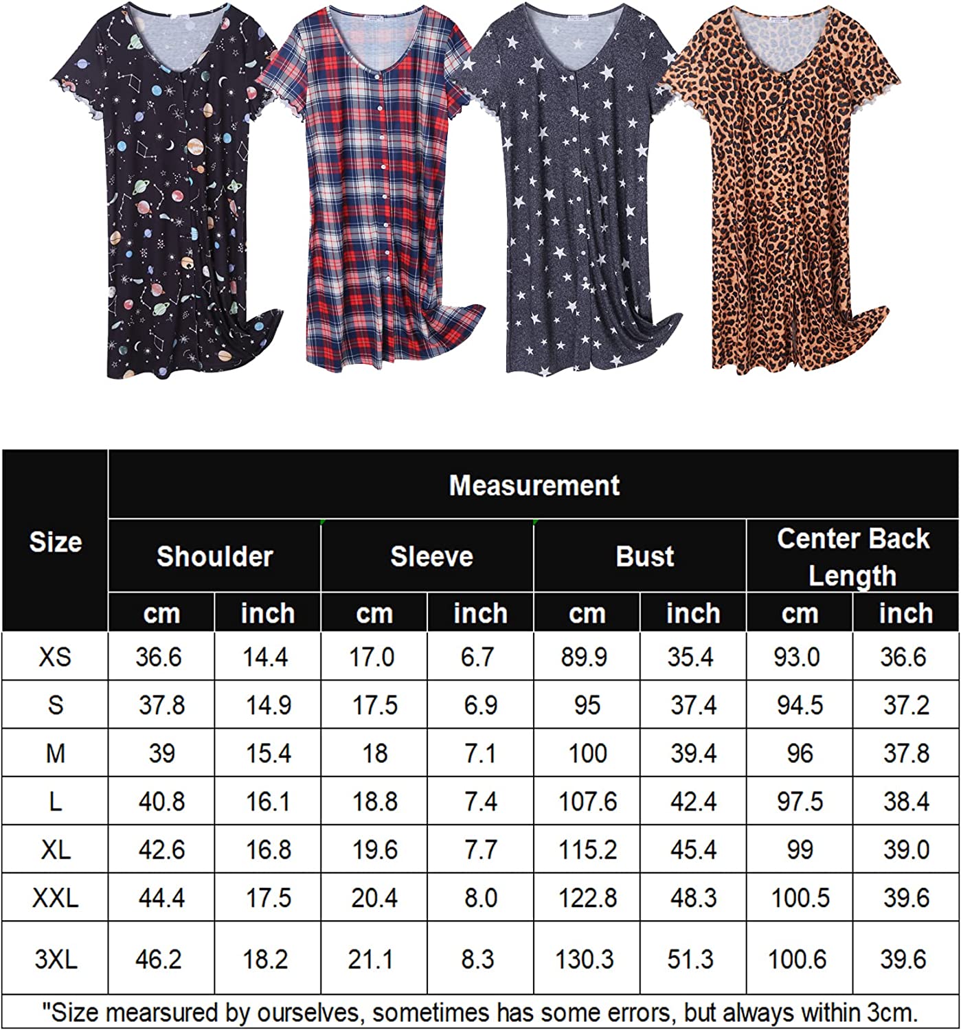 • Short sleeve & knee length pajama dress, feeling much freedom while you are walking.It is a great choice to wear this night shirt while watching TV with your family or your friend.