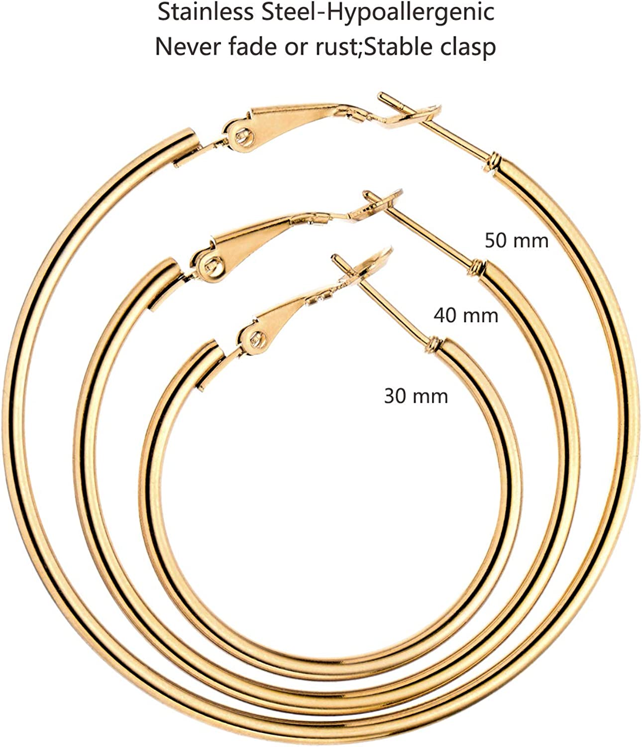 6 Pairs Stainless Steel gold silver Plated Hoop Earrings for Women Girls, Hypoallergenic Hoops Women's Earrings Loop Earrings Set