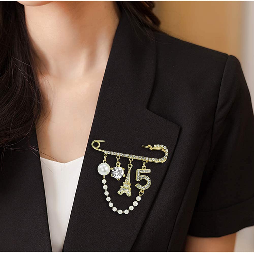• ❤️Brooch Pins for Women Design❤️ :Big Crystal Crown,High Quality Rhinestone,Simulated Pearl,Alloy Eiffel Tower,Durable And Never Change Color