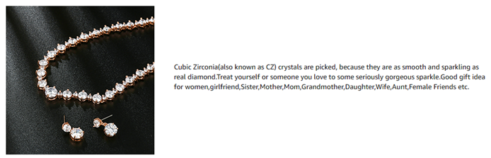 • Material:white gold plated copper + clear cubic zirconias.And the metal surface is smooth,sparkly and beautiful