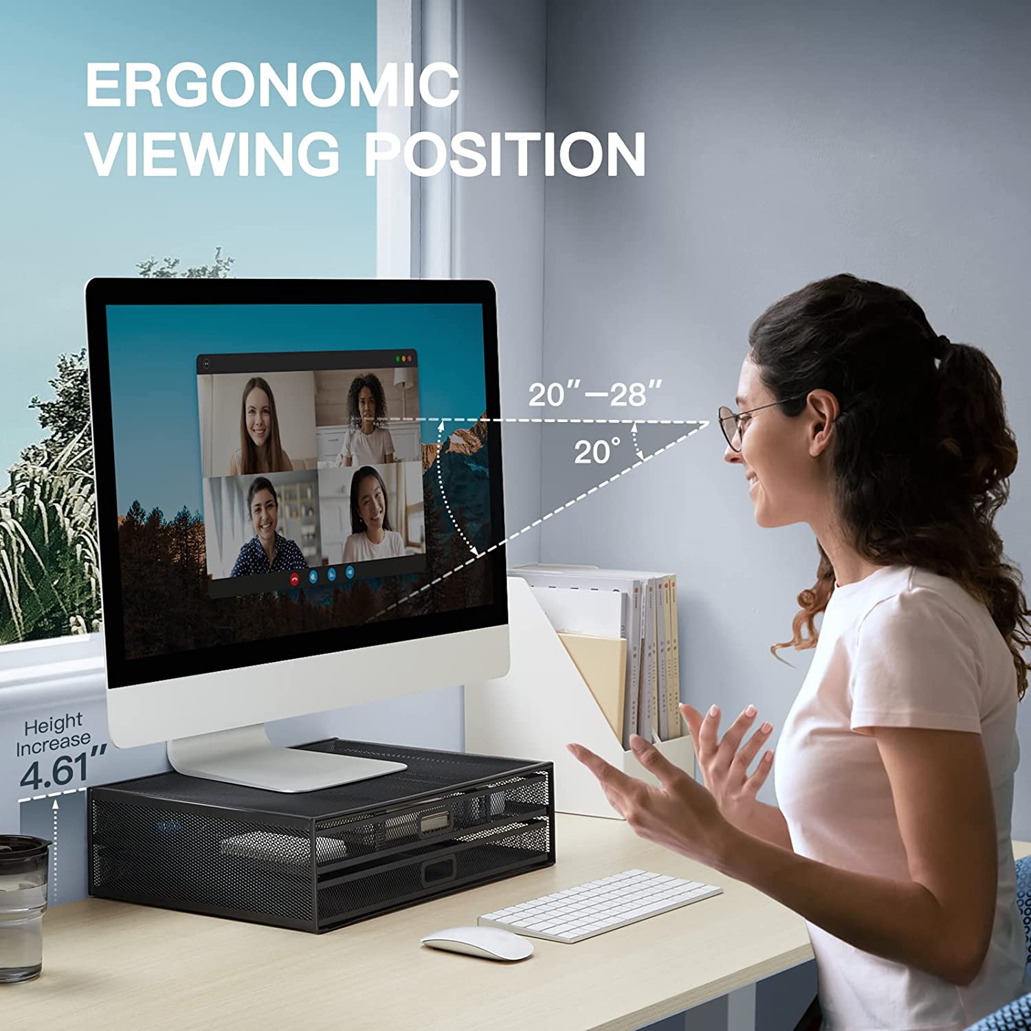 【Ergonomic Monitor Stand Riser】- Raise your monitor by 4.61", helping you to keep a good sitting posture and prevent the possible stress on neck, back and shoulder during your long time work.