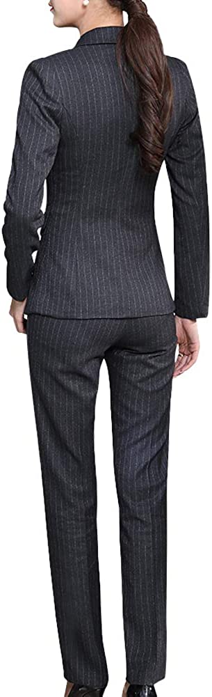 【Top】-Fashion notched lapel,and thick shoulder pads.Exquisite and stick double closure fasten the suit.Practical front pockets with covered placket.Simple long sleeve cuffs design,unique strip pattern design,waisted,regular and neat blazer hem,single-breasted button vest.
