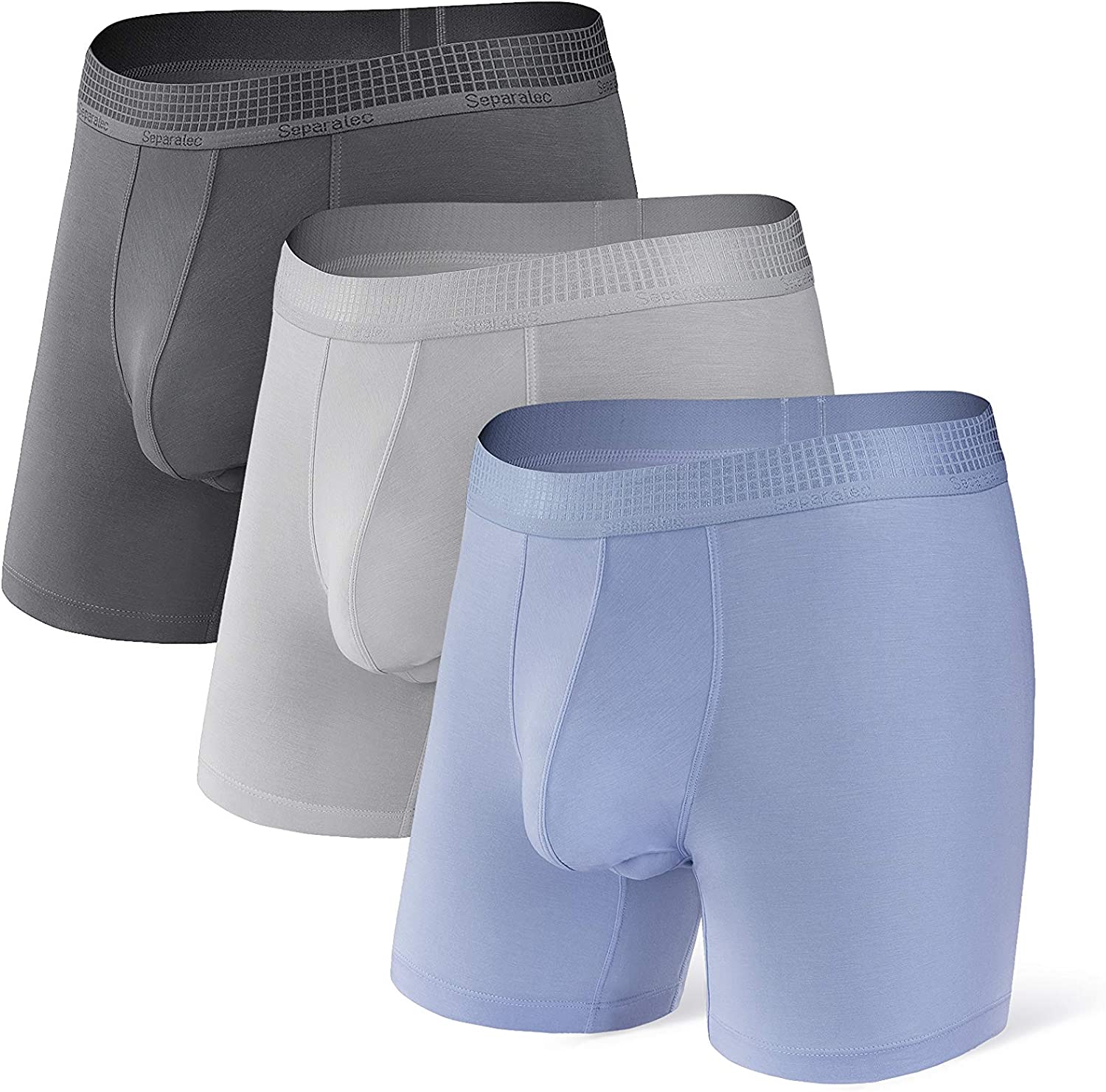 Separatec Men's 3 Pack Micro Modal Separate Pouches Comfort Fit Boxer Briefs