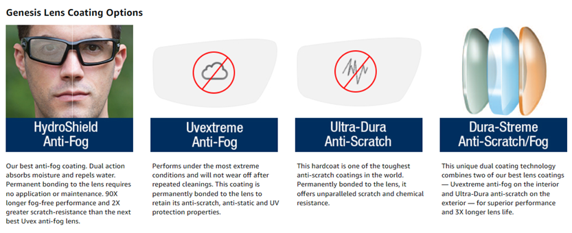 • PERMANENT LENS COATINGS: Uvex lens coatings deliver long-lasting anti-fog & anti-scratch performance; permanent bonding to the lens prevents wash/wear off even after extended use or repeated cleanings