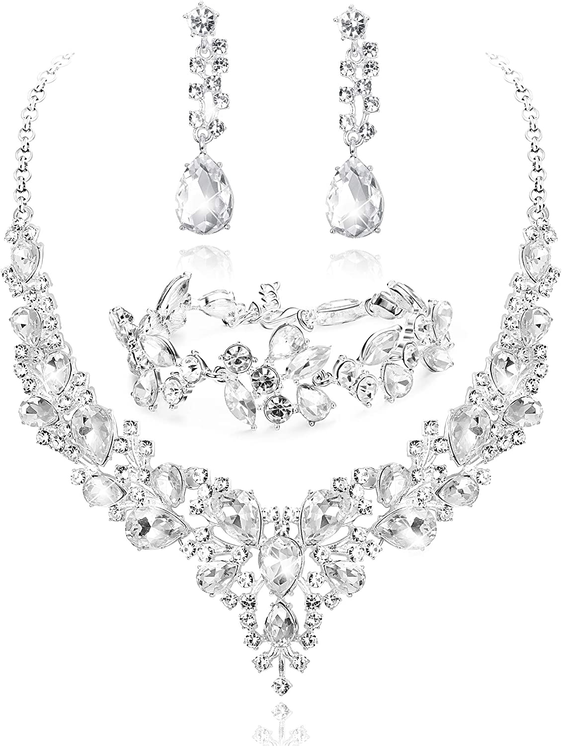 • BRIDAL JEWELRY SETS:This Wedding Jewelry Set Include Shiny necklace,Earrings And Bracelet.If You Are Going Out To A Party or Banquet, This Jewelry Is The Perfect Accessory It Features An Amazing Design And Will Suit Any Formal Or Casual Ensemble.