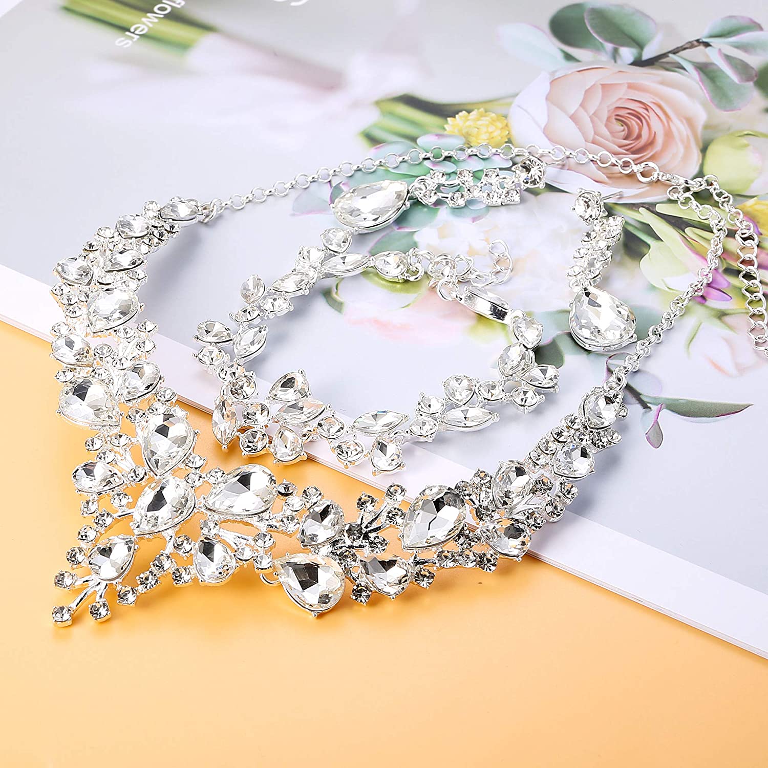 • RHINESTONE JEWELRY SIZE-- Crystal Necklace Adjustable Chain Length 39cm (15.35’’)- 45cm (17.72’’), Bridal Drop Earrings Length: 5cm(2’’). Teardrop Bracelet Length: 19cm(7.4’’), With 5cm (1.97’’) Extension Chain, Easy To Adjust, No Worry About Size Problem.