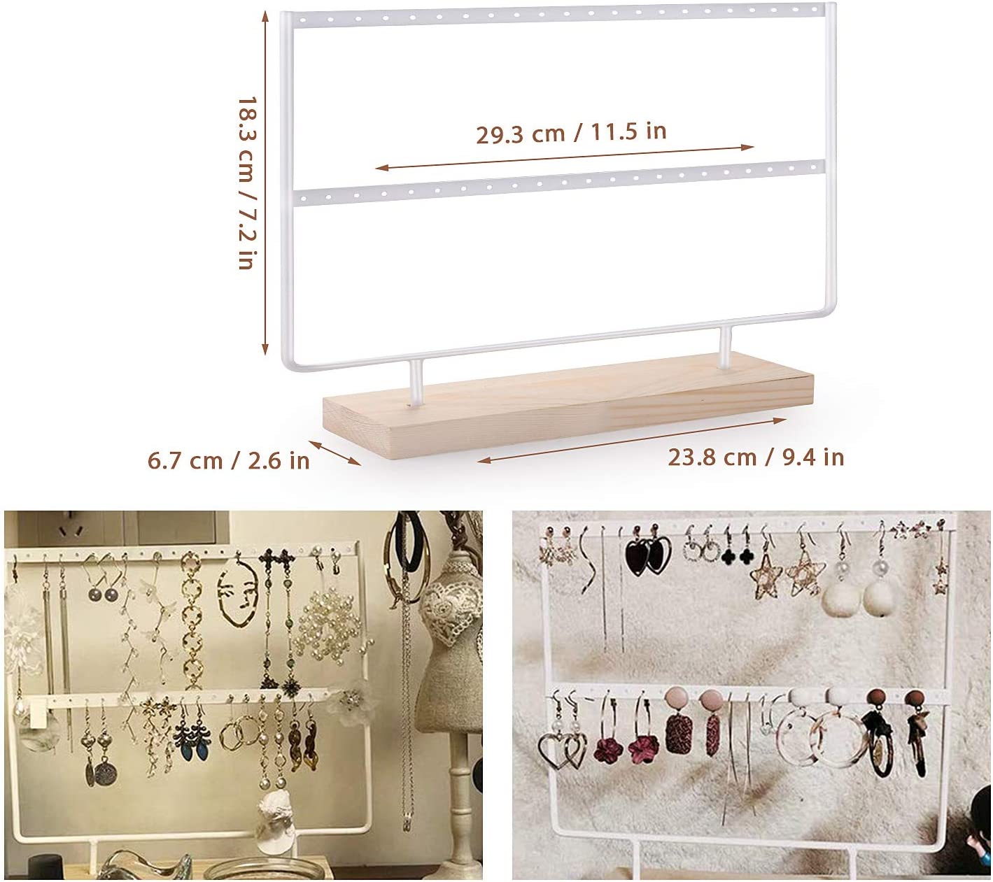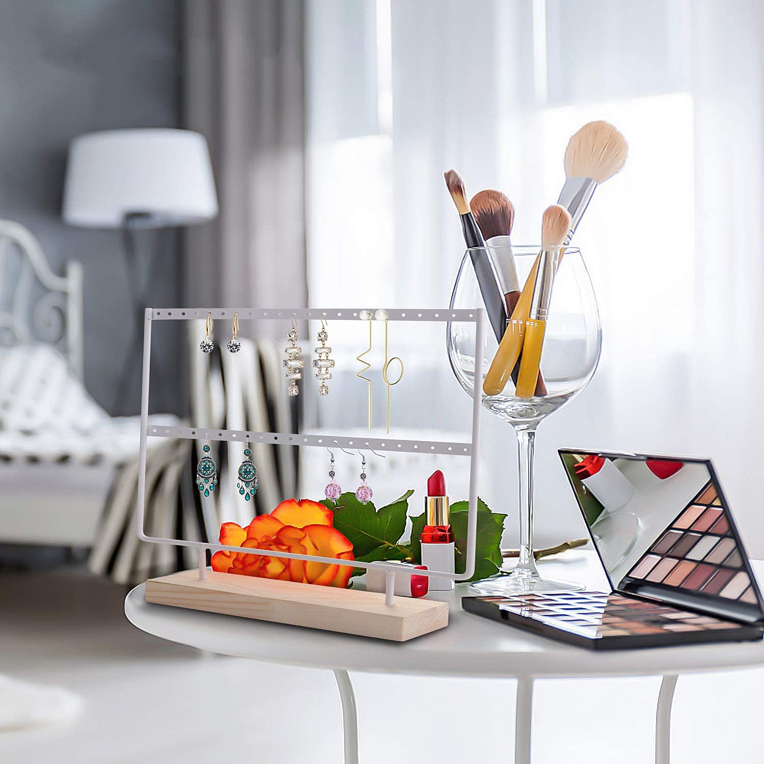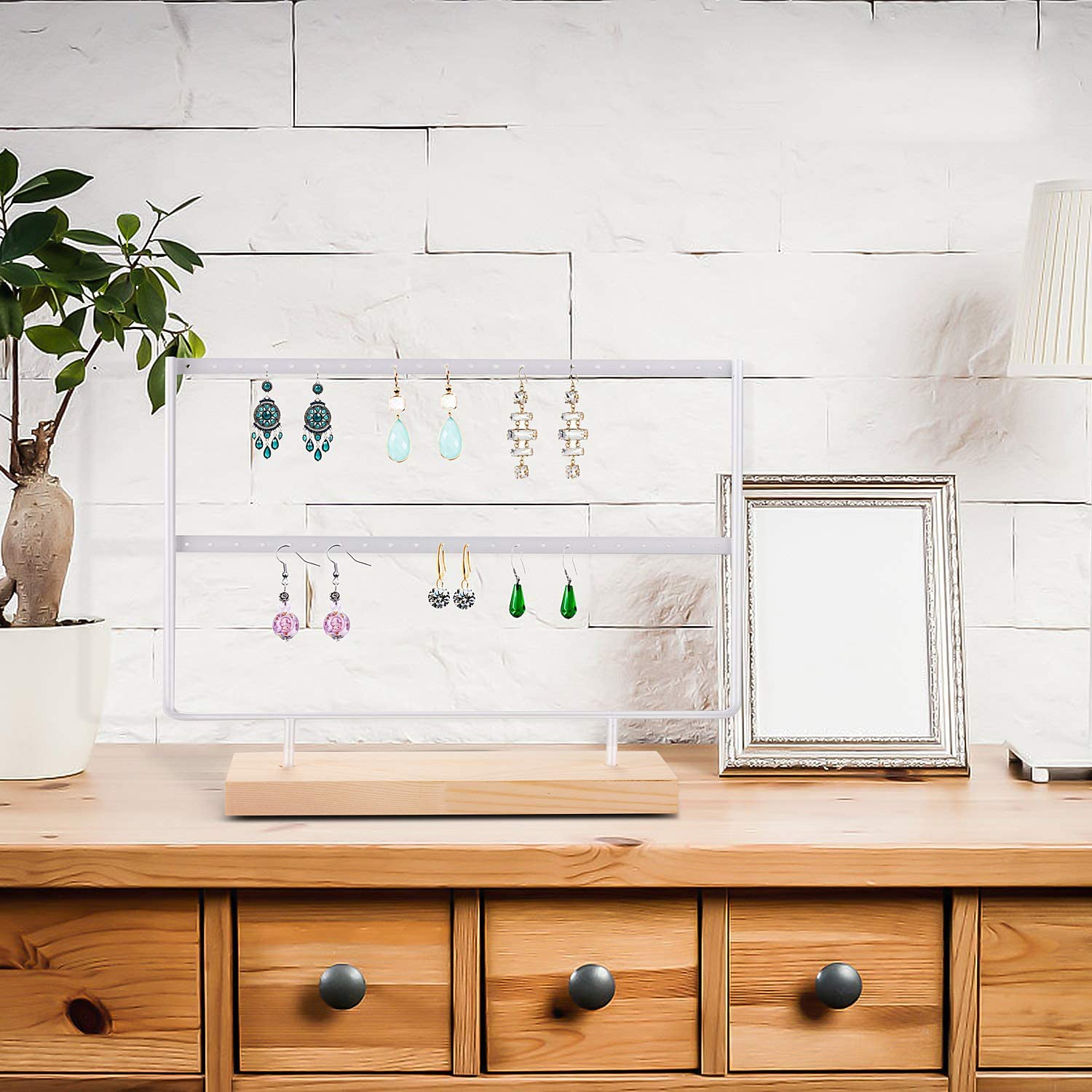 VERGILIUS Earrings Holder Organizer Jewelry Earring Holder Display Wood Stand(46 Holes 2 Layers) (White)