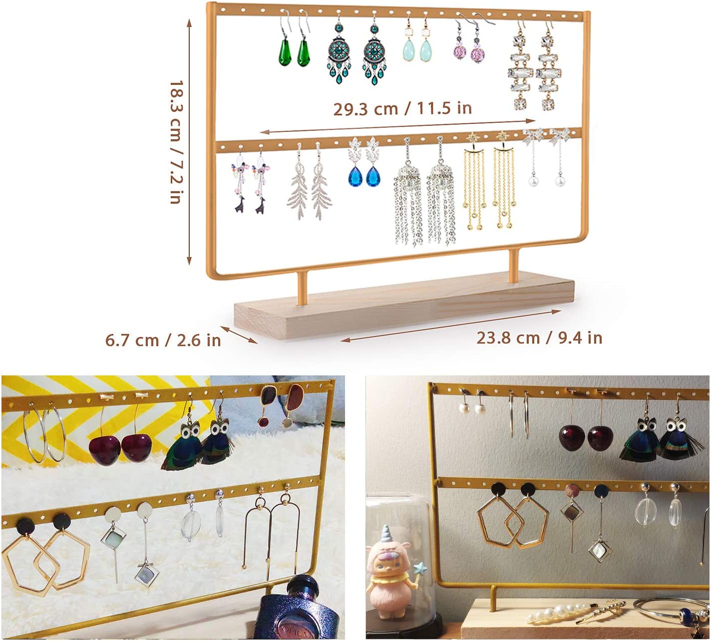 • 46 Holes FOR EARRINGS- This jewelry rack can hold up to 22 pairs of earrings . You’ll be able to hang up your favourite studs, dangle earrings, and hoops with ease. No longer do you need to worry about losing the backs of your earrings. This holder can accommodate push backs, screw backs, butterfly backs, and locking backs.