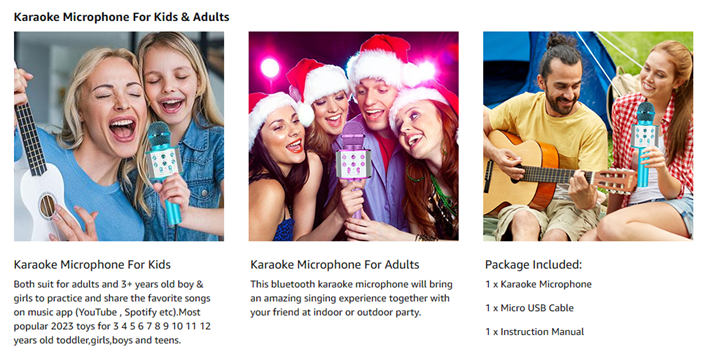 - Our toy microphone conform to USA Official CPC toy safety standards.Specially use UL Certified battery to ensure kids safety while charging and using.Very safe for your boys,girls,kids.