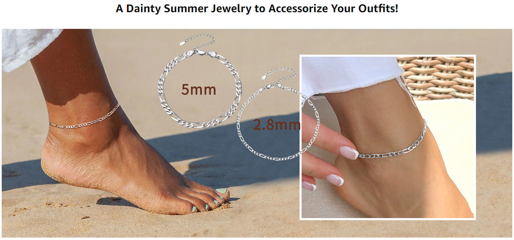 - ?【 UNIQUE DESIGN 】 This fashion dainty chain anklet for women or girl, is your perfect summer jewelry. Minimalist figaro anklet - Perfect for layering with more anklets, sparkles in the sun, perfect fit for your Ankle. This figaro link anklet bracelet will really bring you a lot of attention and praise!