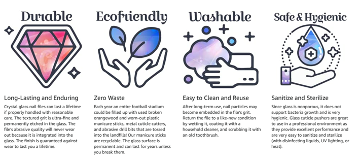 • LIFETIME GUARANTEE - Effective filing surface allows for precision shaping. Each cuticle pusher comes with a lifetime guarantee which covers the filing surface. All glass cuticle pushers we sell are chemically hardened which greatly increases their mechanical resistance.
