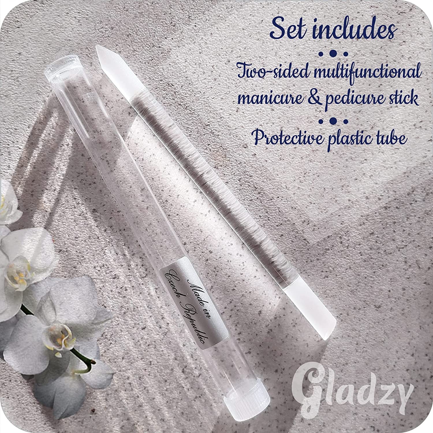 Glass Cuticle Pusher by GLADZY - Manicure Stick Professional Nail Care, Precision Filing Cuticle Remover, Etched Surface Never Wears Out, Genuine Czech Quality